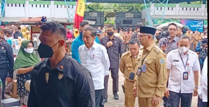 Tiba di Jambi Presiden Joko Widodo langsung menyapa warga Kota Jambi di Pasar Talang Banjar. Kehadiran Jokowi tampak didampingi Gubernur Jambi Al Haris dan Walikota Jambi Sy fasha.