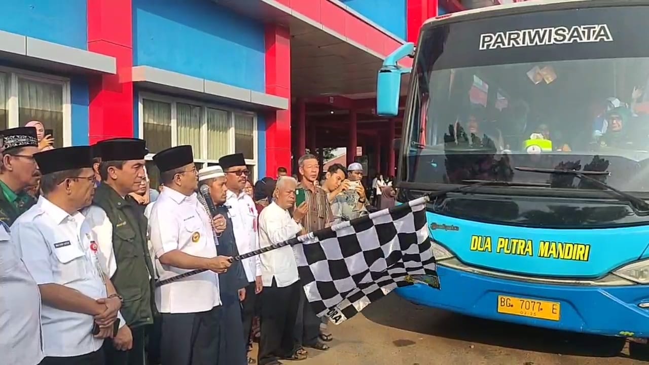 Cicitvjambi.com – Wakil Wali Kota Jambi, Maulana lepas Calon Jemaah Haji (Calhaj) Kota Jambi kloter 19 di lapangan hitam Kantor Damkar Kota Jambi,Rabu (7/6).