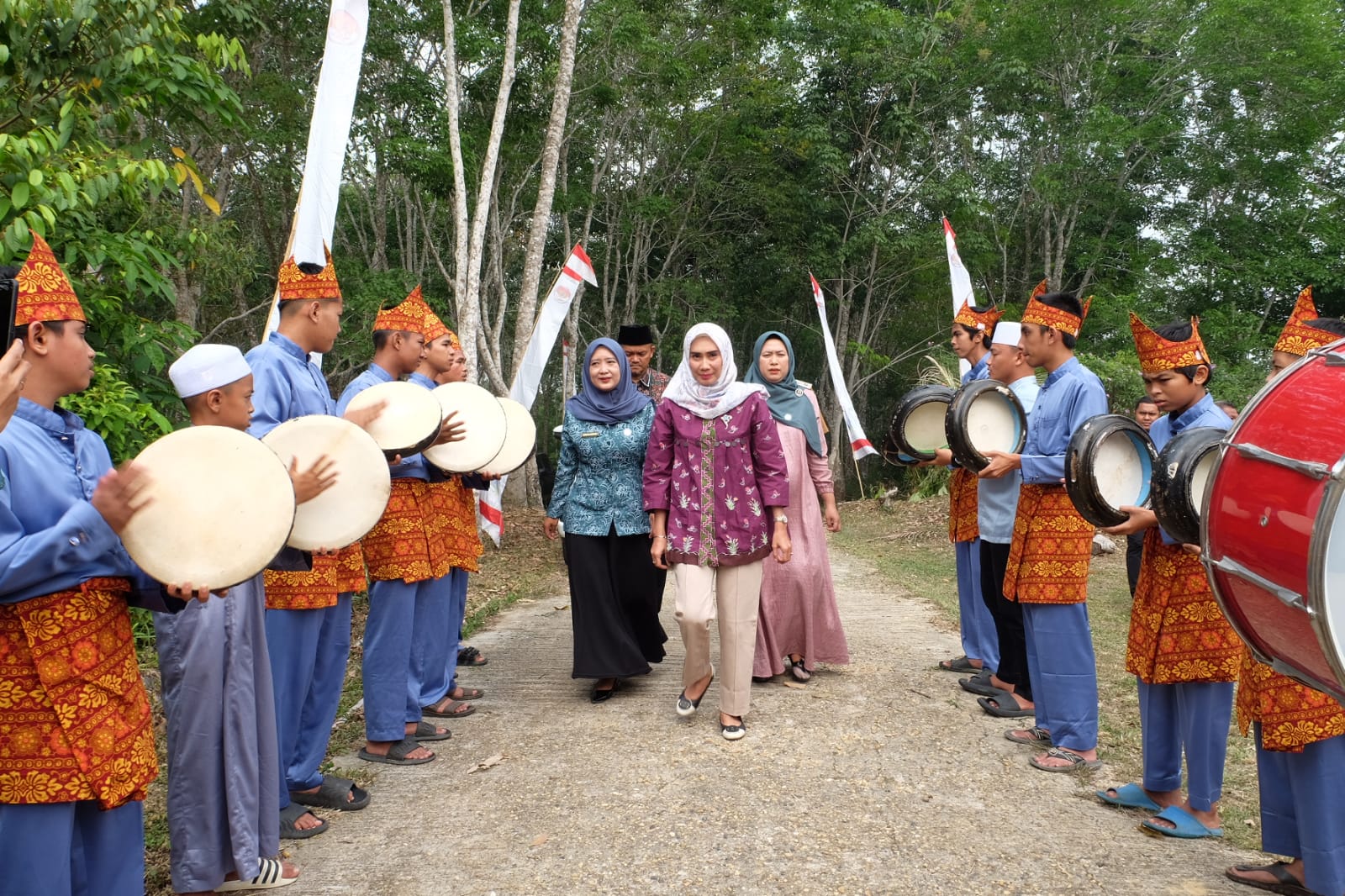 Ketua Tim Penggerak PKK Kabupaten Muaro Jambi Faradilla Zahara turun ke Desa Mendalo Indah ingin melihat langsung Tim Penilaian Lomba Program PKK tersebut.