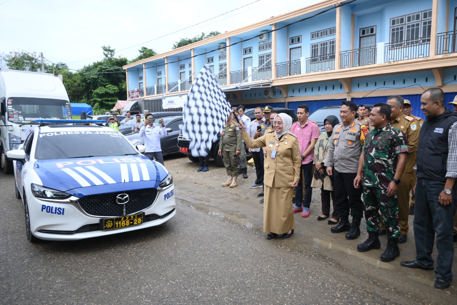 Cicitvjambi.com – Penjabat Wali Kota Jambi, Sri Purwaningsih melepas secara simbolis pendistribusian logistik Pemilu 2024 bersama dengan Forkompimda, KPU dan Bawaslu serta seluruh OPD terkait bertempat di Gudang KPU Kota Jambi Kelurahan Talang Bakung Kecamatan Paal Merah, Senin (12/2/2024).