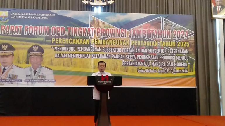 Hal tersebut dikemukakan Gubernur saat membuka Rapat Forum Organisasi Perangkat Daerah (OPD) Dinas Tanaman Pangan Hortikultura dan Peternakan Provinsi Jambi Tahun 2024, dan Perencanaan Pembangunan Pertanian Tahun 2025, bertempat di Swiss-Belhotel Jambi, Rabu (06/03/2024).