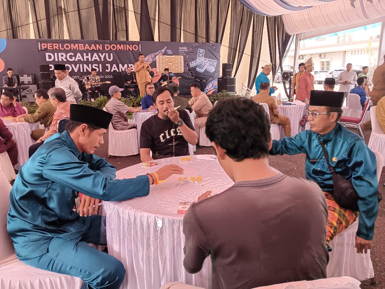Cicitvjambi.com – Turnamen Domino yang digelar Sekretariat DPRD Provinsi Jambi dalam rangka memeriahkan Hari Ulang Tahun (HUT) Jambi ke-68 Provinsi Jambi selesai digelar. Kegiatan yang digelar di halaman Gedung DPRD Provinsi Jambi itu diikuti 64 tim putra, 16 tim legislatif-eksekutif serta 16 tim putri.