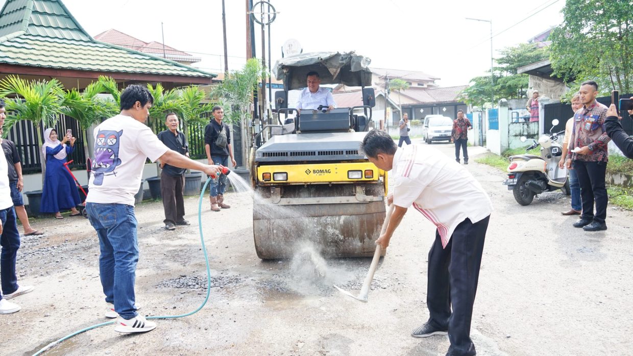 Ketua DPRD Kota Jambi Kemas Faried Alfarelly sangat mengapresiasi masyarakat punya kepedulian tinggi untuk swadaya menimbun jalan yang rusak dengan split.