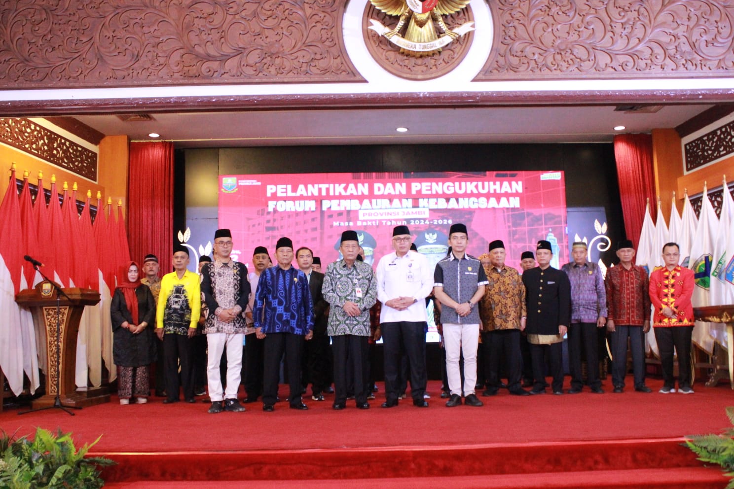 CiciTvJambi.com – Pengukuhan Pengurus Forum Pembauran Kebangsaan (FPK) Provinsi Jambi Periode Tahun 2024-2026, dilakukan langsung oleh Wakil Gubernur Jambi Abdullah Sani. Agenda ini bertempat di Auditorium Rumah Dinas Gubernur Jambi, Rabu (12/02/2025).