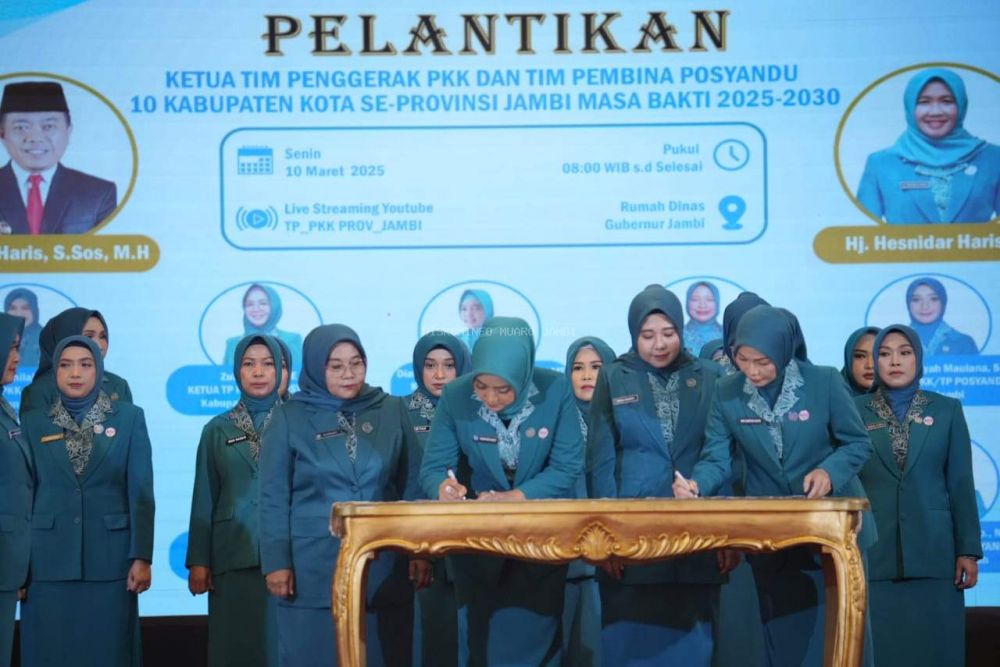 CiciTvJambi.com – Hari ini Ibu Hesti Hesnidar Al Harris resmi melantik Ketua Tim Penggerak PKK Kabupaten/Kota se-Provinsi Jambi, Senin (10/03/2025).