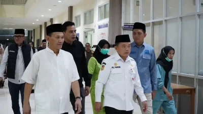 Jambi – Gubernur Jambi Dr. H.Al Haris, S.Sos, MH mengunjungi Rumah Sakit Umum Daerah (RSUD) Raden Mattaher Jambi di beberapa ruang perawatan dan ICU, Minggu (30/03/2025) malam.