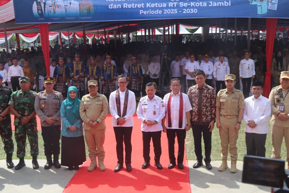 Pelantikan Ketua Rukun Tetangga (RT) Se-Kota Jambi Periode 2025-2030 sebanyak 1.650 orang ini dihadiri langsung Wakil Menteri Dalam Negeri Republik Indonesia Bima Arya Sugiarto, bertempat di Lapangan Kantor Wali Kota Jambi, Kota Jambi, Rabu (21/05/2025).