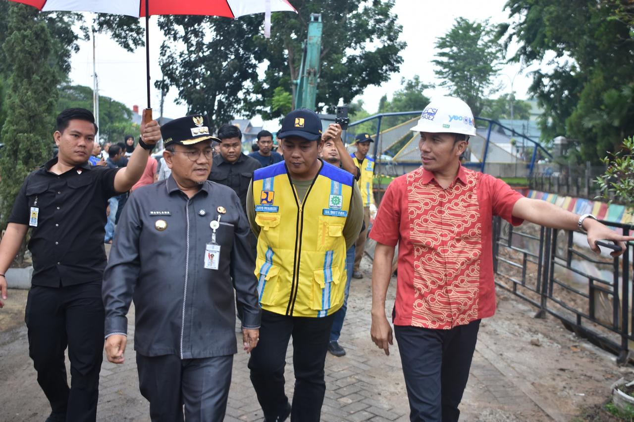 CiciTvJambi.Com – Wali Kota Jambi, Dr. dr. H. Maulana, M.K.M, mendampingi Anggota Komisi V DPR RI Daerah Pemilihan Jambi, Dr. Edi Purwanto, S.H.I., M.Si., dalam rangka Kunjungan Kerja (Kunker) ke sejumlah lokasi proyek pengendalian banjir di Kota Jambi, pada Sabtu (26/7/2025).