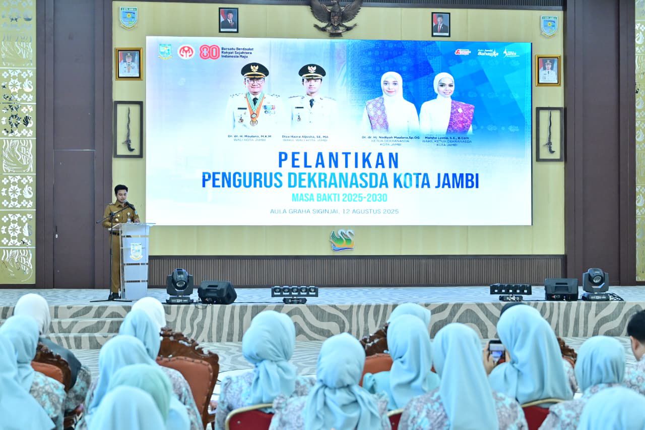 CiciTvJambi.Com – Ketua Dewan Kerajinan Nasional Daerah (Dekranasda) Kota Jambi, Dr. dr. Hj. Nadiyah Maulana, Sp.OG, resmi melantik pengurus Dewan Kerajinan Nasional Daerah (Dekranasda) Kota Jambi masa bakti 2025-2030, dalam acara yang berlangsung di Aula Grha Siginjai, Selasa (12/8/2025).