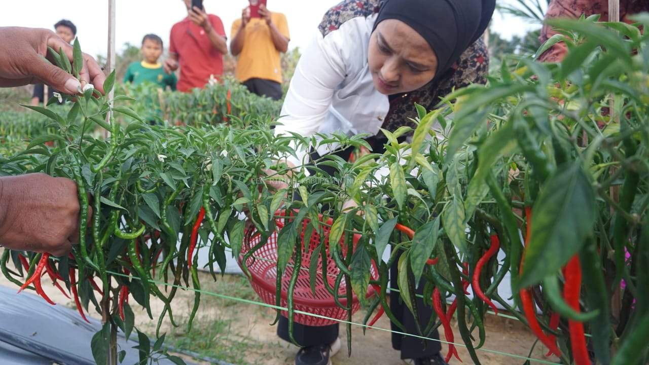 CiciTvJambi.Com – Bertepat di Desa Gerunggung, Kecamatan Sekernan (15/01/26) sore, dalam upaya mendukung ketahanan pangan keluarga dan menekan angka inflasi daerah, Ketua Tim Penggerak Pemberdayaan Kesejahteraan Keluarga (TP PKK) Kabupaten Muaro Jambi Ririn Novianty, SE melakukan aksi nyata melalui kegiatan panen cabai merah bersama kelompok tani dan masyarakat setempat.